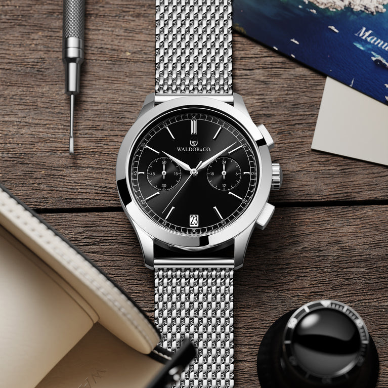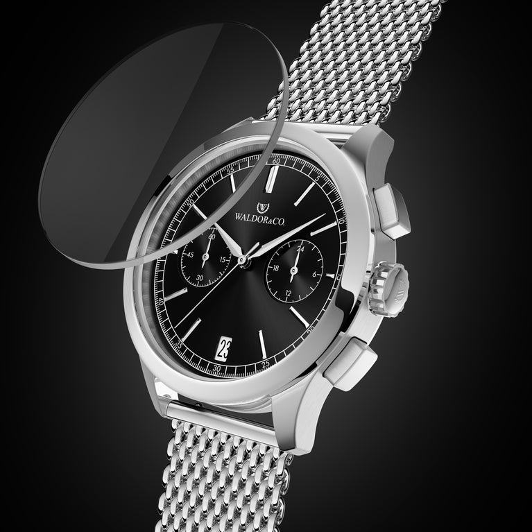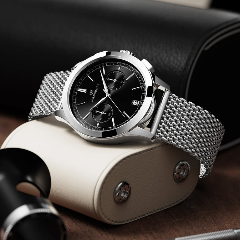 Strap: Mesh strap in rhodium-plated 316L stainless steel