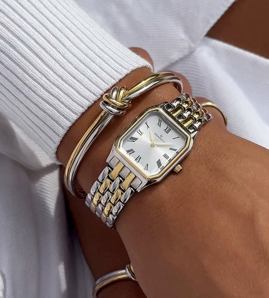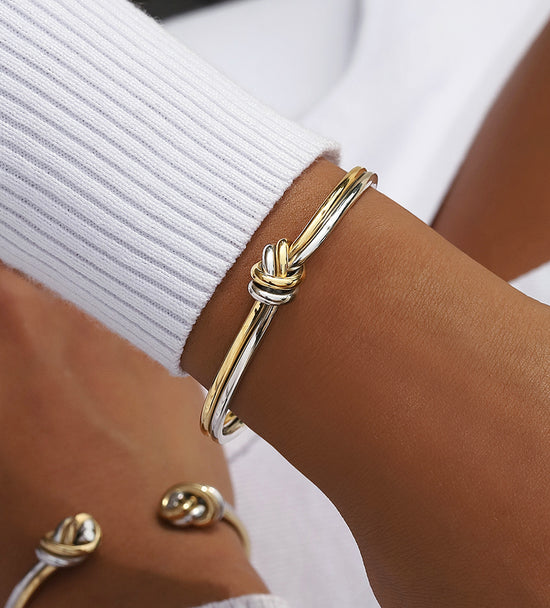A seamless match in silver and gold. Pair the Eternal 22 Bellagio with the Dual Knot Bangle for a polished finish.